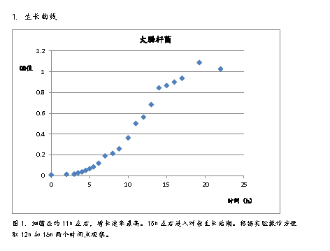 1、 將實驗菌種在5ml NA液體培養(yǎng)基中活化,活化的菌種接種于100ml NA液體培養(yǎng)基中,37℃搖床中培養(yǎng),接種后立即取0.1ml測量OD值,后連續(xù)22h取菌液測其OD值,并繪制實驗菌株的生長曲線。
