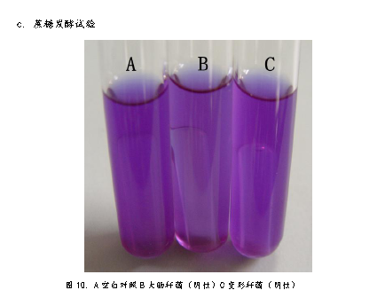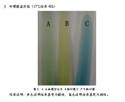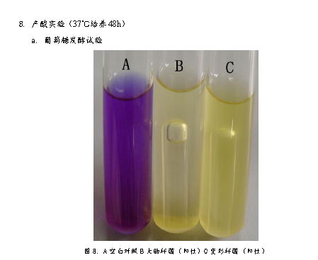 3、 將菌種接種到生理生化檢測培養(yǎng)基中,37℃培養(yǎng)48h。檢測菌種生理生化特性。