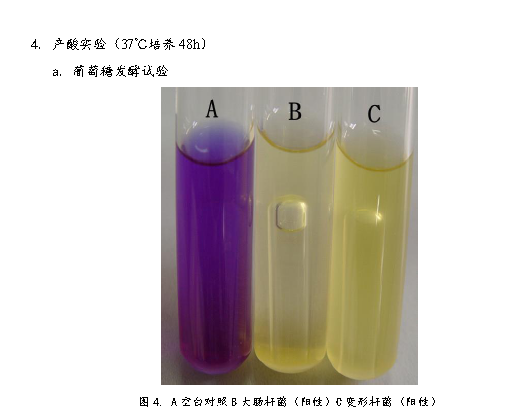 3、 普通變形桿菌接種到生理生化檢測培養基中,37℃培養48h。檢測菌種生理生化特性。
