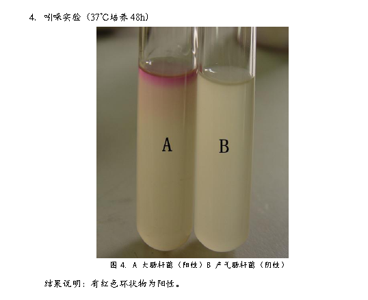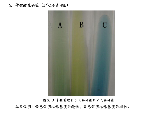 3、 將產氣腸桿菌接種到生理生化檢測培養基中,37℃培養48h。檢測菌種生理生化特性。