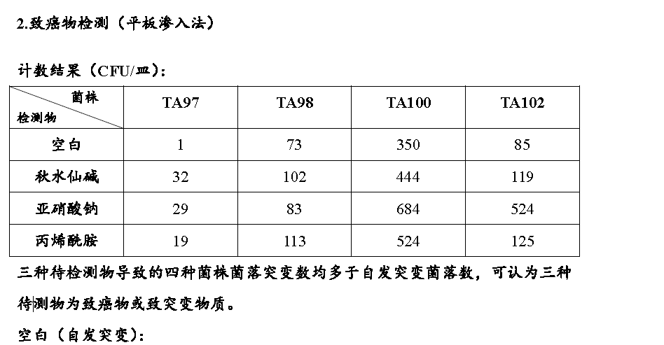 菌株:鼠傷寒沙門氏菌突變型TA97(CCTCC AB2014173),TA98(CCTCC AB204062),TA100(CCTCC AB204063),TA102(CCTCC AB2014174);