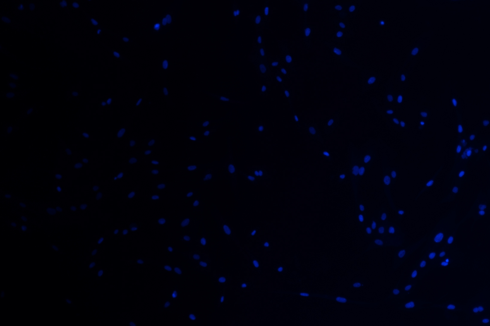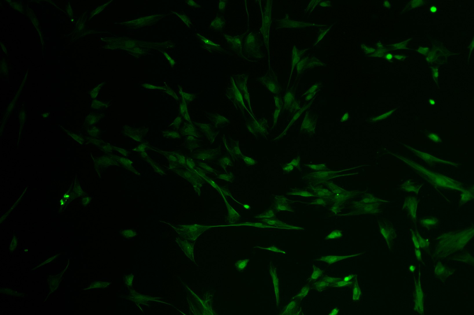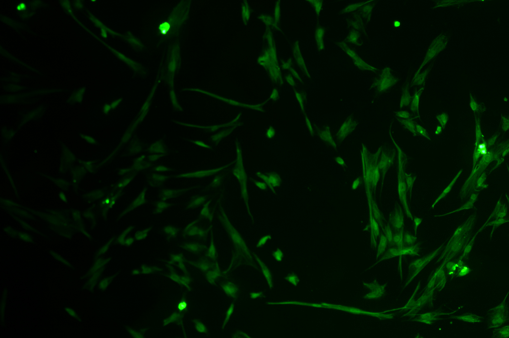 1) 復蘇細胞:將含有1mL細胞懸液的凍存管迅速放入37℃水浴中(水面要低于凍存管蓋部)搖晃解凍,移入事先準備好的含有4mL培養(yǎng)基的15ml離心管中混合均勻。在1000RPM條件下離心4分鐘,棄去上清液,加入1mL培養(yǎng)基后吹勻。然后將所有細胞懸液移入含有5ml培養(yǎng)基的培養(yǎng)瓶中培養(yǎng)過夜。第二天換液并檢查細胞密度。