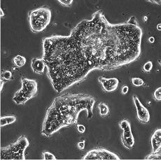 如果細胞密度達80%-90%,即可進行傳代培養。1. 棄去培養上清,用不含鈣、鎂離子的PBS潤洗細胞1-2次。2. 加2ml消化液(0.25%Trypsin-0.53mM EDTA)于培養瓶中,置于37℃培養箱中消化1-2分鐘,然后在顯微鏡下觀察細胞消化情況,若細胞大部分變圓并脫落,迅速拿回操作臺,輕敲幾下培養瓶后加少量培養基終止消化。3. 按6-8ml/瓶補加培養基,輕輕打勻后吸出,在1000RPM條件下離心4分鐘,棄去上清液,補加1-2mL培養液后吹勻。4. 將細胞懸液按1:2到1:5的比例分到新的含8ml培養基的新皿中或者瓶中 |
