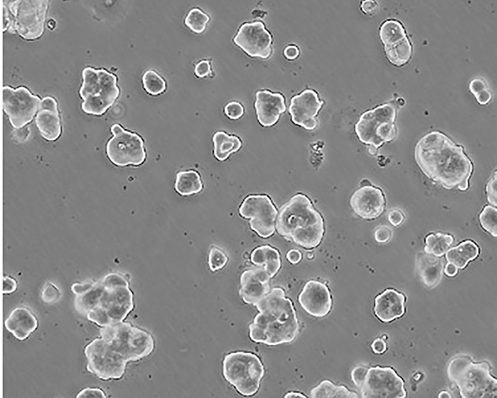 如果細胞密度達80%-90%,即可進行傳代培養。1. 棄去培養上清,用不含鈣、鎂離子的PBS潤洗細胞1-2次。2. 加2ml消化液(0.25%Trypsin-0.53mM EDTA)于培養瓶中,置于37℃培養箱中消化1-2分鐘,然后在顯微鏡下觀察細胞消化情況,若細胞大部分變圓并脫落,迅速拿回操作臺,輕敲幾下培養瓶后加少量培養基終止消化。3. 按6-8ml/瓶補加培養基,輕輕打勻后吸出,在1000RPM條件下離心4分鐘,棄去上清液,補加1-2mL培養液后吹勻。4. 將細胞懸液按1:2到1:5的比例分到新的含8ml培養基的新皿中或者瓶中 |