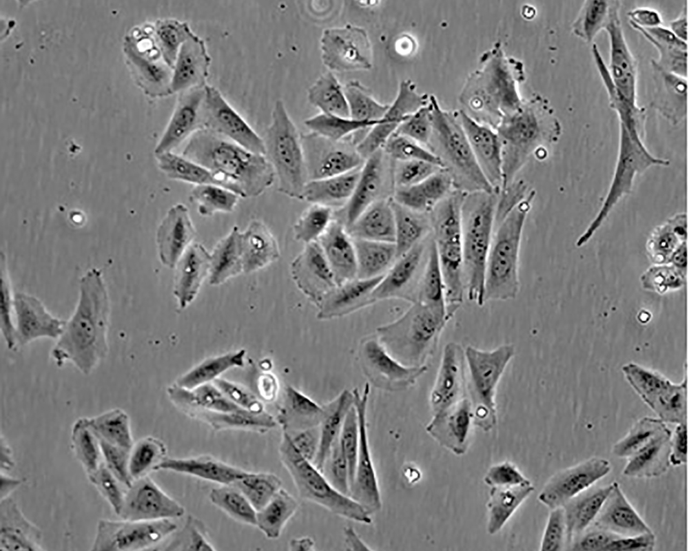 該細胞是FoghJ和TrempeG分離和鑒定的眾多人類腫瘤細胞系中的一種;該細胞來自一位11歲的白人女性的骨肉瘤組織。患者經過放療以及氨甲喋呤、阿霉素、長春新堿、環磷酰胺和aramycin-C等多種藥物治療。該細胞在免疫抑制小鼠中不致瘤,細胞表達表皮生長因子EGF受體、轉化生長因子β(1型和2型)受體。 |