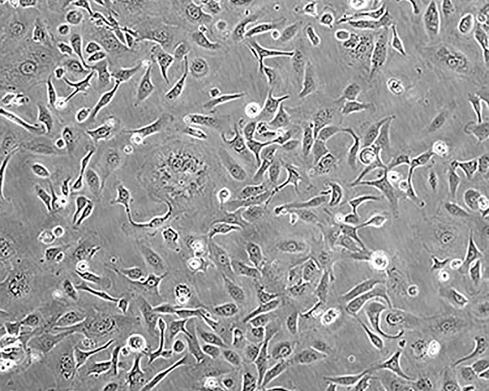 如果細胞密度達80%-90%,即可進行傳代培養。1. 棄去培養上清,用不含鈣、鎂離子的PBS潤洗細胞1-2次。2. 加2ml消化液(0.25%Trypsin-0.53mM EDTA)于培養瓶中,置于37℃培養箱中消化1-2分鐘,然后在顯微鏡下觀察細胞消化情況,若細胞大部分變圓并脫落,迅速拿回操作臺,輕敲幾下培養瓶后加少量培養基終止消化。3. 按6-8ml/瓶補加培養基,輕輕打勻后吸出,在1000RPM條件下離心4分鐘,棄去上清液,補加1-2mL培養液后吹勻。4. 將細胞懸液按1:2到1:5的比例分到新的含8ml培養基的新皿中或者瓶中 |