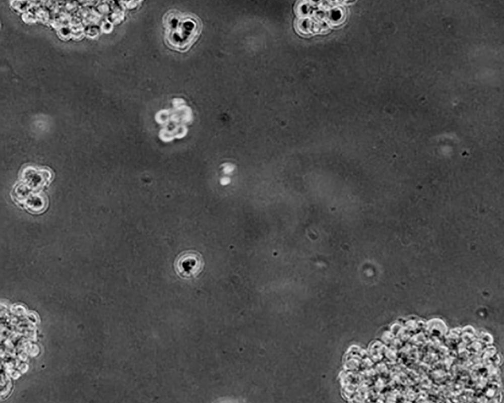 :待細胞生長狀態(tài)良好時,可進行細胞凍存。下面T25瓶為例;1.細胞凍存時,棄去培養(yǎng)基后,PBS清洗瓶底1-2次后加入1ml胰酶,細胞變圓脫落后,加入2ml完全培養(yǎng)基終止消化,可使用血球計數(shù)板計數(shù)。2.1000RPM離心5分鐘去掉上清。用血清重懸浮,加DMSO至最終濃度為10%。加入DMSO后迅速混勻,按每1ml的數(shù)量分配到凍存管中,注意凍存管做好標識。本公司按每個凍存管細胞數(shù)目大于1X106個細胞凍存。3.將凍存管置于程序降溫盒中,放入-80度冰箱,至少2個小時以后轉(zhuǎn)入液氮灌儲存。記錄凍存管位置以便下次拿取。 |