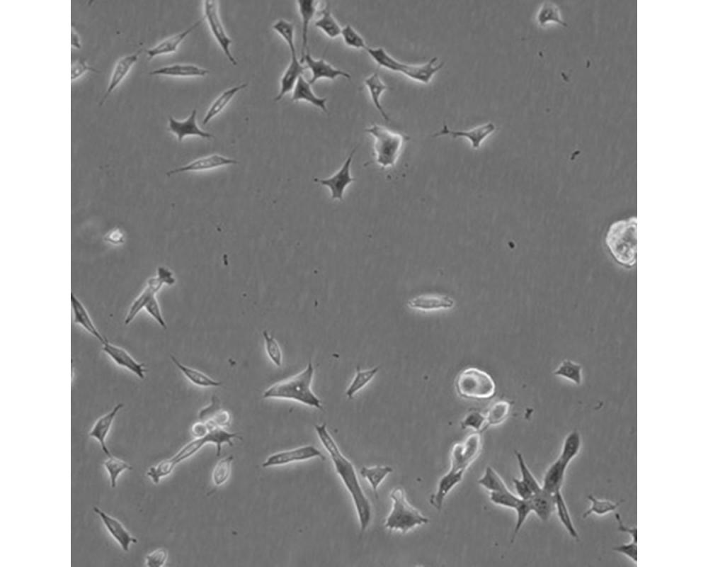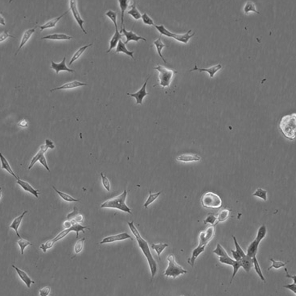 如果細胞密度達80%-90%,即可進行傳代培養。1. 棄去培養上清,用不含鈣、鎂離子的PBS潤洗細胞1-2次。2. 加2ml消化液(0.25%Trypsin-0.53mM EDTA)于培養瓶中,置于37℃培養箱中消化1-2分鐘,然后在顯微鏡下觀察細胞消化情況,若細胞大部分變圓并脫落,迅速拿回操作臺,輕敲幾下培養瓶后加少量培養基終止消化。3. 按6-8ml/瓶補加培養基,輕輕打勻后吸出,在1000RPM條件下離心4分鐘,棄去上清液,補加1-2mL培養液后吹勻。4. 將細胞懸液按1:2到1:5的比例分到新的含8ml培養基的新皿中或者瓶中。 |