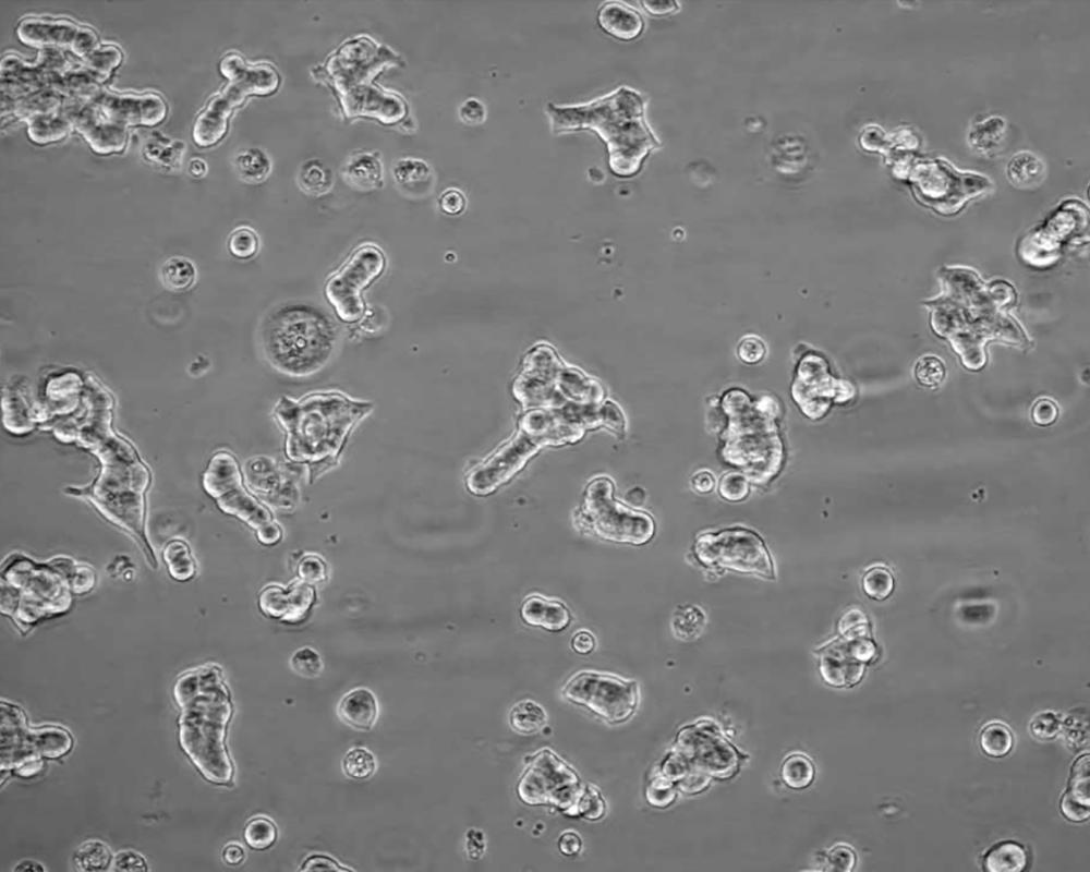 如果細胞密度達80%-90%,即可進行傳代培養。1. 棄去培養上清,用不含鈣、鎂離子的PBS潤洗細胞1-2次。2. 加2ml消化液(0.25%Trypsin-0.53mM EDTA)于培養瓶中,置于37℃培養箱中消化1-2分鐘,然后在顯微鏡下觀察細胞消化情況,若細胞大部分變圓并脫落,迅速拿回操作臺,輕敲幾下培養瓶后加少量培養基終止消化。3. 按6-8ml/瓶補加培養基,輕輕打勻后吸出,在1000RPM條件下離心4分鐘,棄去上清液,補加1-2mL培養液后吹勻。4. 將細胞懸液按1:2到1:5的比例分到新的含8ml培養基的新皿中或者瓶中 |